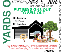 Read MoreFarmersville will host Yards of Yard Sales on Saturday, June 6. This day is set aside to allow residents to hold their own yard…